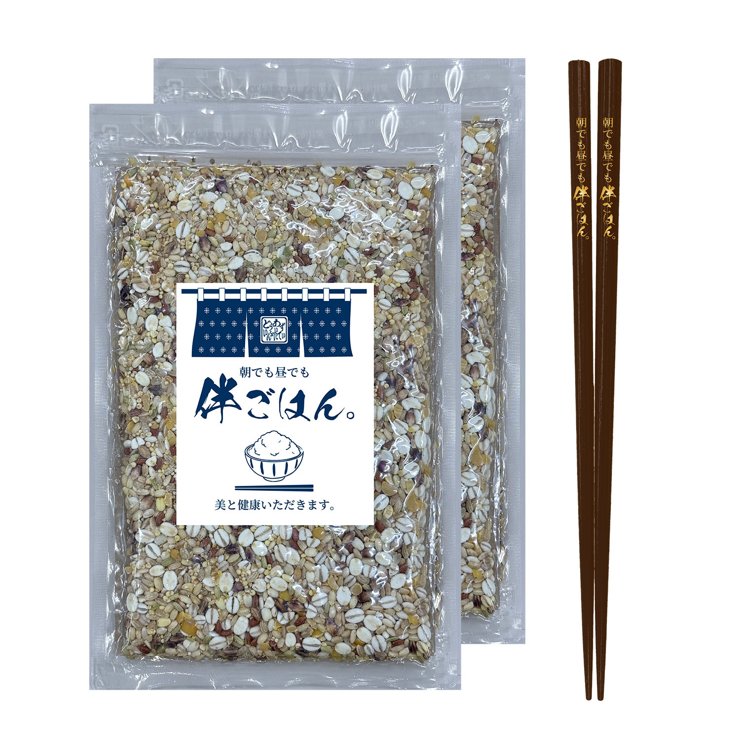 そして今回の注目アイテムは、伴さんがこだわり抜いて完成させたオリジナルブレンドの雑穀米。健康と美容を意識し、商品名にも想いを込めたスペシャルな一品です。雑穀米2パックとオリジナル箸がセットになった特別仕様でお届けします。